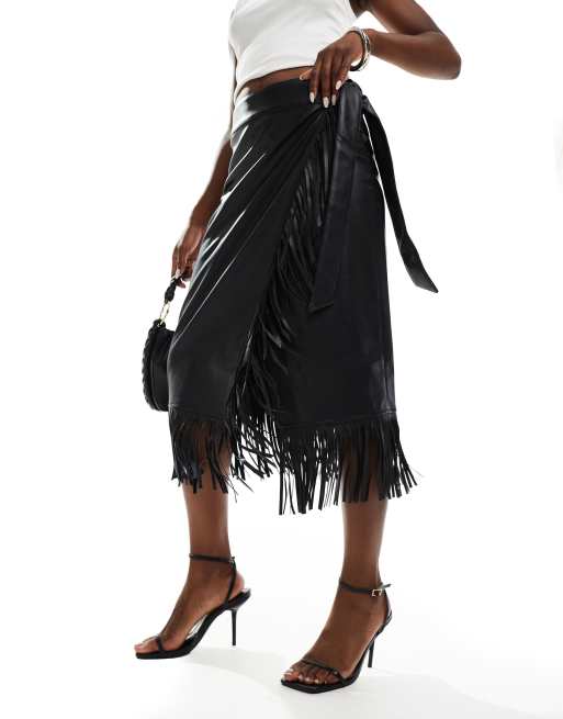 Never Fully Dressed - Halflange rok van polyurethaan met franje in zwart