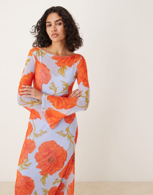 Never Fully Dressed - Jurk van mesh in blauw met klaproosprint