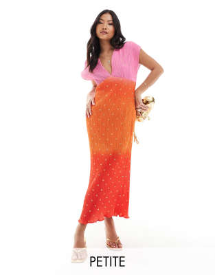 Never Fully Dressed Petite - Plissé midaxi jurk met gouden vlekjes in zonsondergang ombre