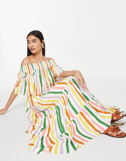 Never Fully Dressed - Sadie - Gestreepte maxi bardot-jurk in multi