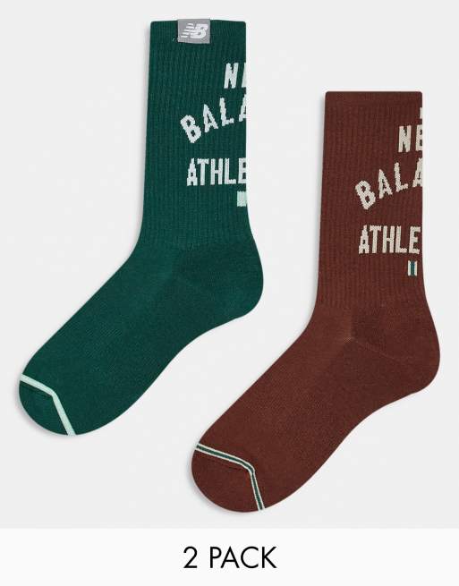 New Balance - Set van 2 paar geribbelde sokken in groen en bordeauxrood