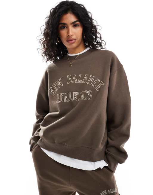 New Balance - Sweatshirt met grafische print en ronde hals in bruin