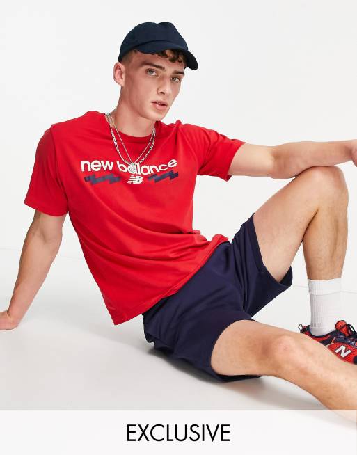 New Balance - T-shirt in collegestijl met logo in rood, exclusief bij ASOS
