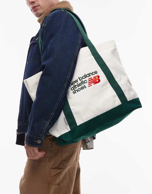 New Balance - Tote tas van canvas in gebroken wit en groen