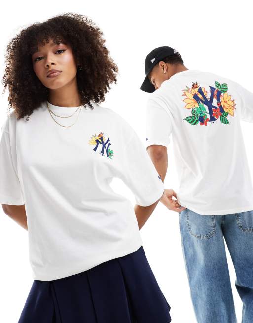 New Era - New York Yankees - Uniseks T-shirt met grafische bloemenprint in wit