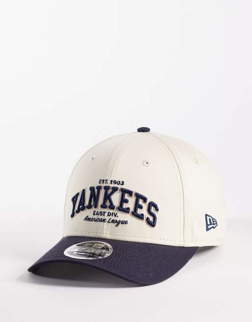 New Era - NY Yankees - 9Forty - Pet met tekstlogo en contrasterende klep in crème/marineblauw