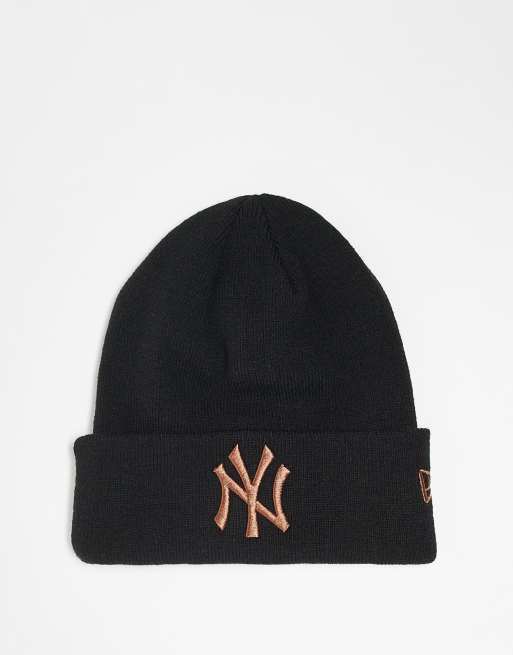 New Era - NY Yankees - Beanie met omslag in zwart met roségoud logo