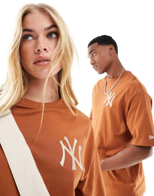 New Era - Uniseks T-shirt met NY-logo in roestbruin