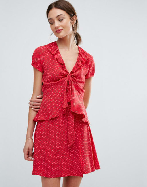 Newlily - Combi-set met rok en blouse met stippen en ruches