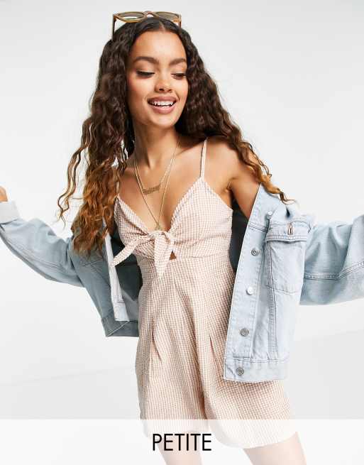 New Look Petite - Playsuit met geknoopte voorkant in bruin patroon