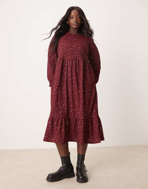 New Look Curve - Aangerimpelde midi jurk van gekreukte stof in bordeauxrood