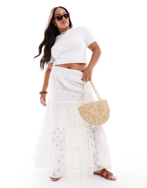 New Look Curve - Geborduurde midirok met gesmokte taille in wit