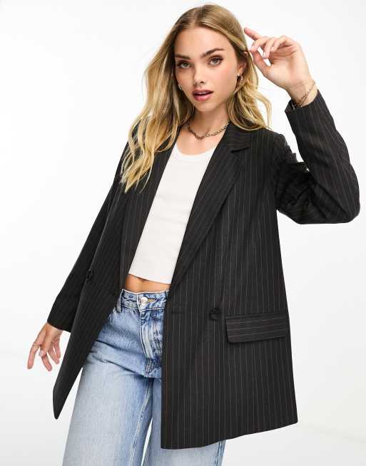 New Look - Blazer in donkergrijs met krijtstreep