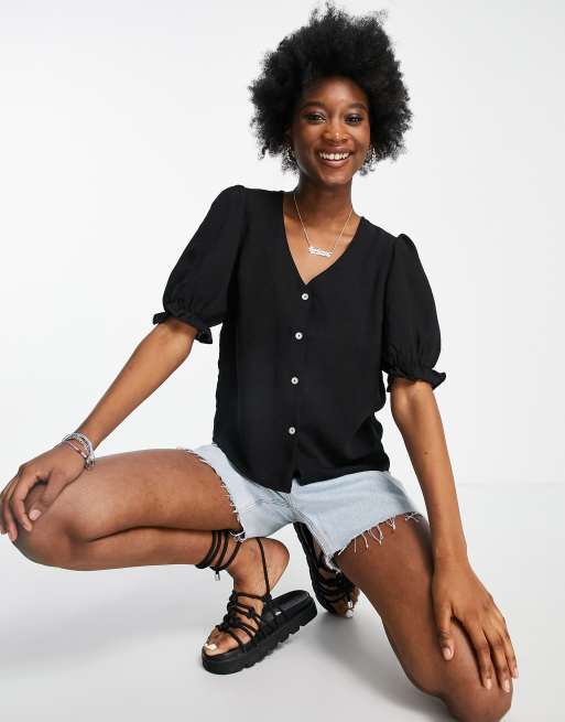 New Look - Blouse met knoopsluiting en detail aan de mouwen in zwart