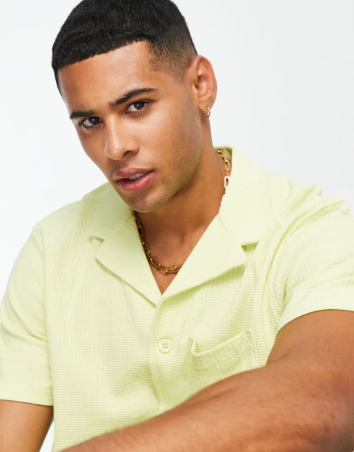 New Look - Co-ord set van overhemd en short van wafelstof in limoengroen