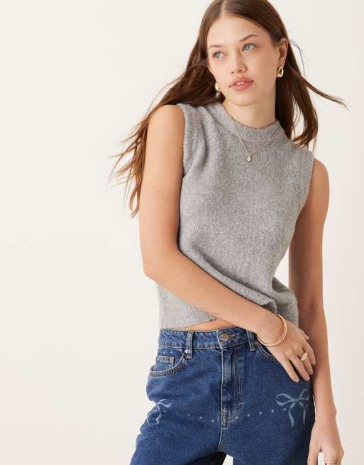 New Look - Gebreid bouclé hemdje in grijs