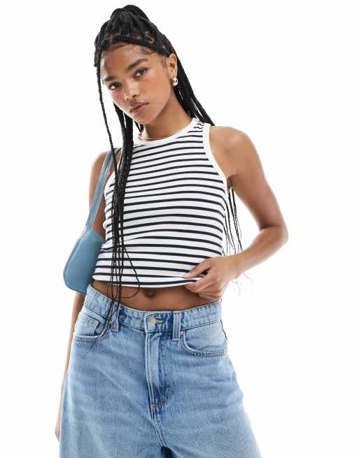 New Look - Gestreept hemdje met racerhals in wit