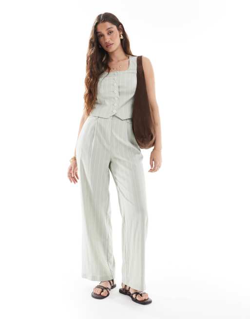New Look - Gestreepte elegante co-ord set in groen