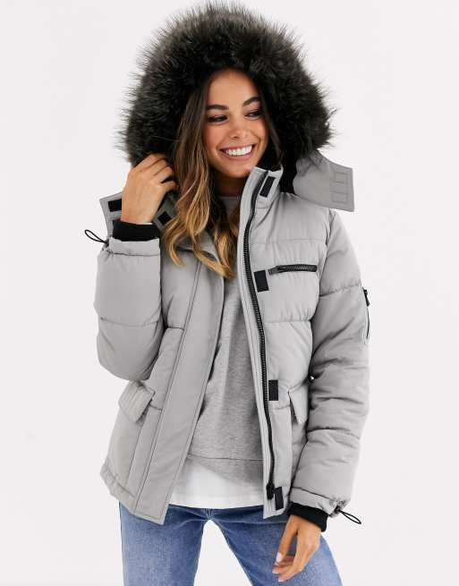 New Look - Gewatteerd skijack in vaalgrijs