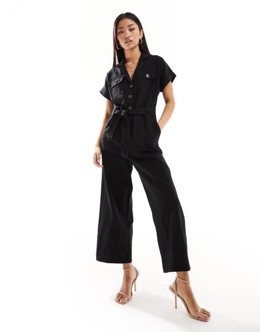 New Look - Jumpsuit met knoopsluiting en gestrikte taille in zwart