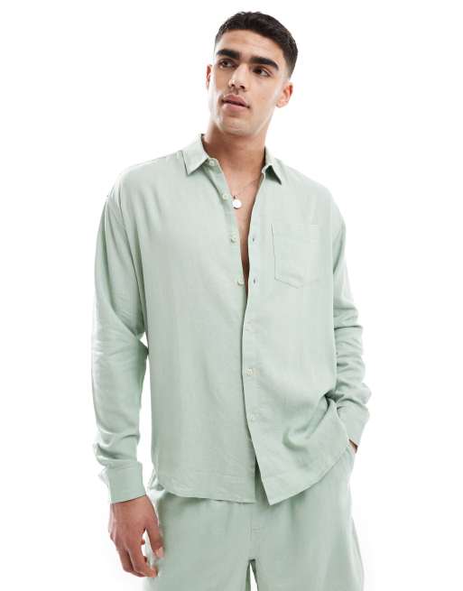 New Look - Luchtig overhemd van linnenmix met lange mouwen in lichtgroen, deel van co-ord set