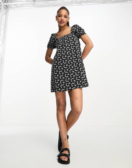 New Look - Mini-jurk met gestrikte achterkant, pofmouwen en broderie in zwart