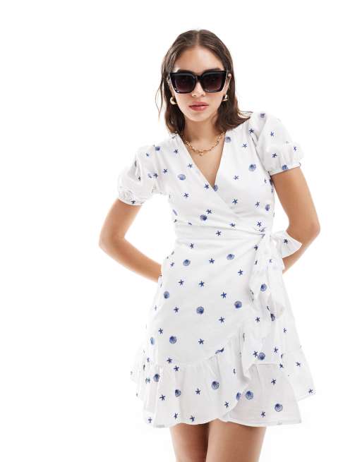 New Look - Mini wikkeljurk met schelpenversiering in wit