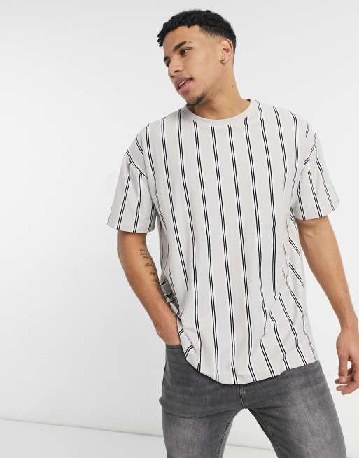 New Look - Oversized T-shirt met verticale strepen in grijs