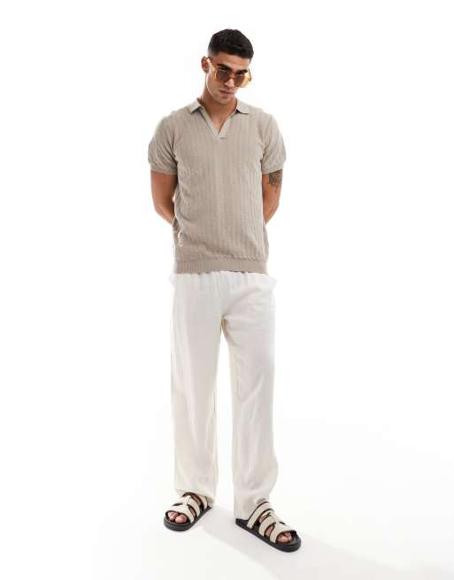 New Look - Poloshirt met korte mouwen en getextureerde strepen in camel