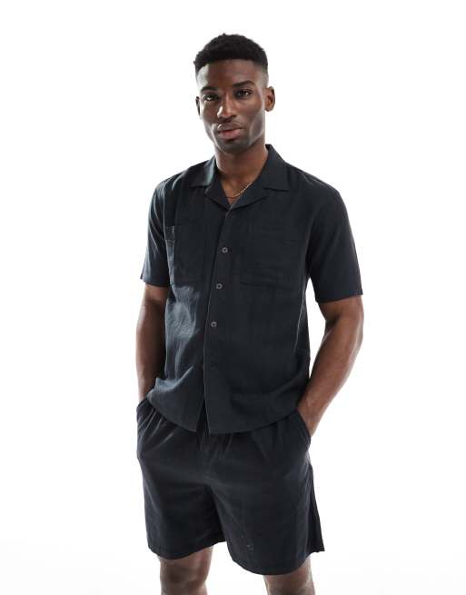 New Look - Recht overhemd van linnenmix met zakken in zwart, deel van co-ord set