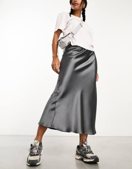 New Look - Satijnen midirok in grijs