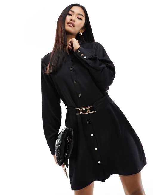 New Look - Satijnen mini-overhemdjurk met riem met gespdetail in zwart