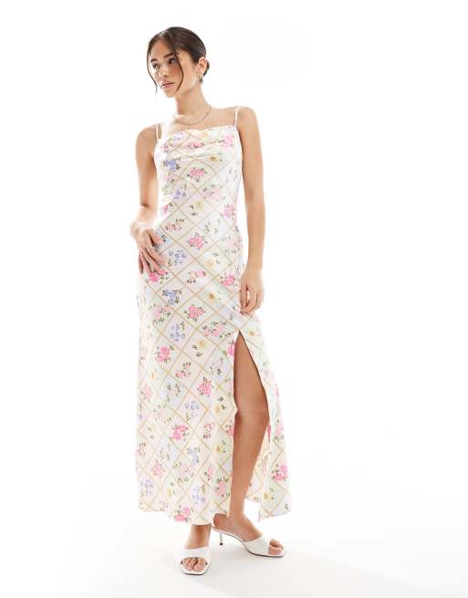 New Look - Satijnen slipdress met gebloemde tegelprint in roze