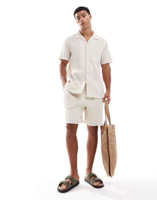 New Look - Short van kreukelstof in gebroken wit, deel van co-ord set
