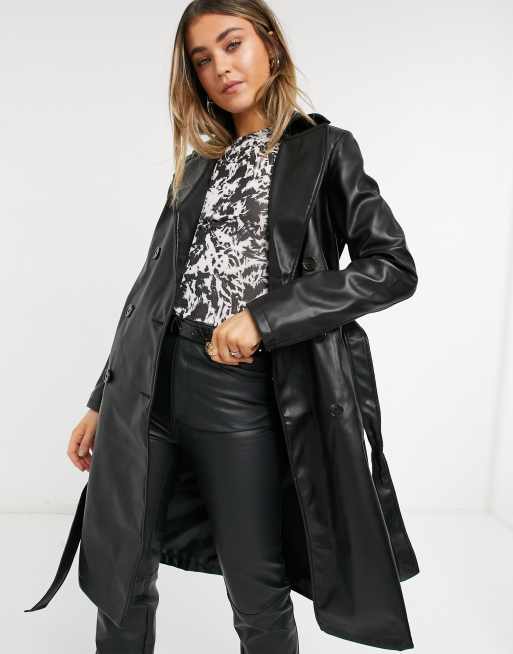 New Look - Trenchcoat van kunstleer in zwart