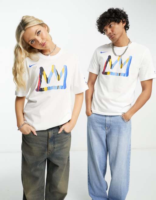 Nike Basketball - NBA Brooklyn Nets - Uniseks opwarm T-shirt met grafische letterprint in wit
