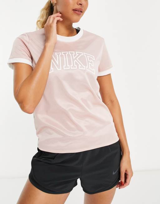 Nike Running - Swoosh Run - Dri-FIT - T-shirt met logo in collegestijl in lichtroze