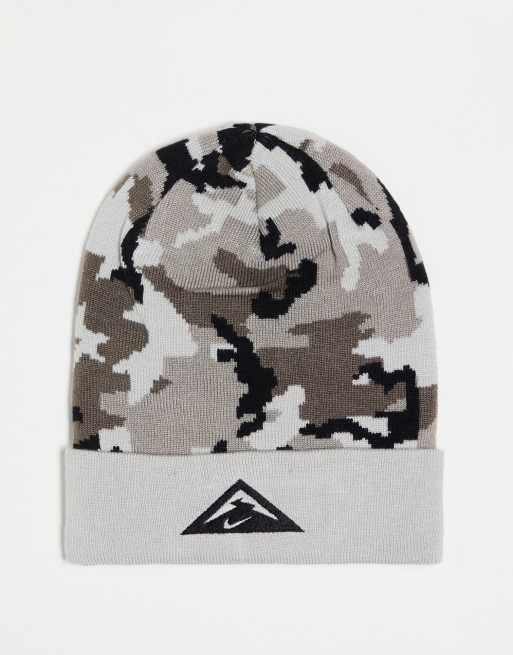 Nike Running - Trail - Dri-FIT - Uniseks beanie met camouflageprint in grijs