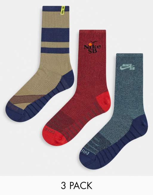 Nike SB - Everyday Max - Set van 3 paar sokken in stone, oranje en marineblauw