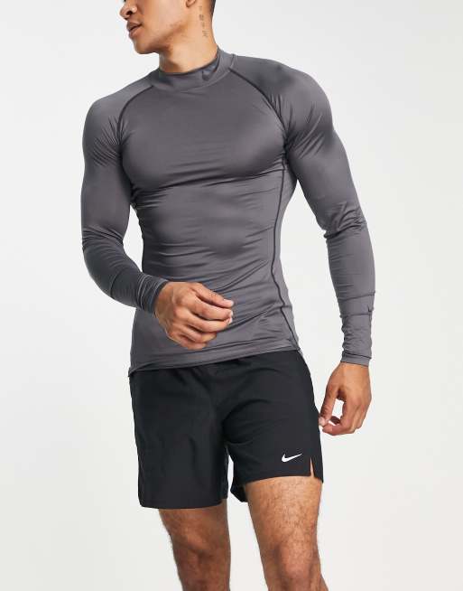 Nike - Pro Training - Muscle fit Dri-FIT T-shirt met opstaande hals en lange mouwen in grijs
