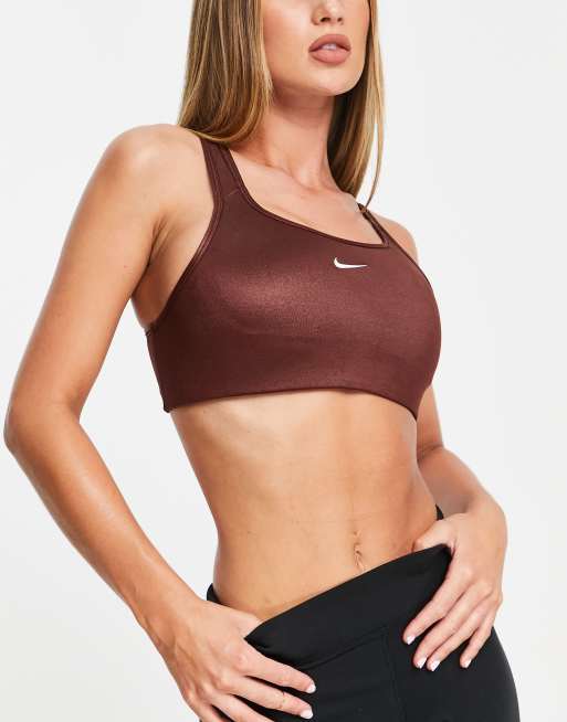 Nike Training - Dri-FIT - Hoogglanzende sportbeha met medium ondersteuning in brons