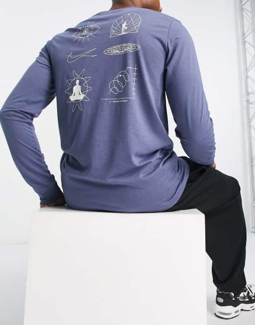 Nike Yoga - T-shirt met lange mouwen en print op de achterkant in blauw