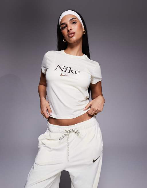 Nike - Chill - T-shirt met grafische logoprint in crème en bruin