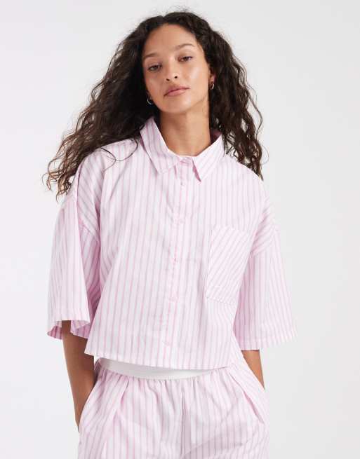 Nike - Cropped overhemd van popeline met strepen in roze en wit