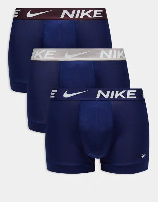 Nike - Dri-FIT - Essentials - Set van 3 paar microvezel boxershorts met contrasterende taillebanden in marineblauw