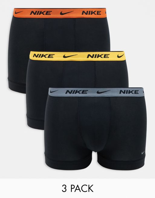 Nike - Everyday Cotton Stretch - Set van 3 boxershorts in zwart met contrasterende tailleband