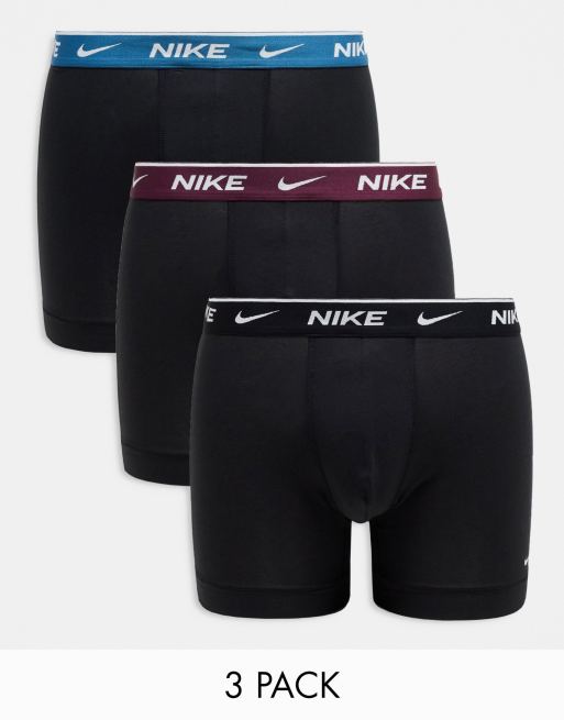 Nike - Everyday - Cotton Stretch - Set van 3 boxershorts in zwart met taillebanden in zwart/blauw/bordeauxrood