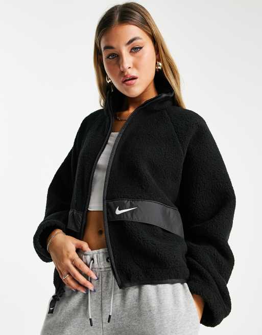 Nike - Jack van imitatieschapenvacht en mini swoosh-logo in zwart