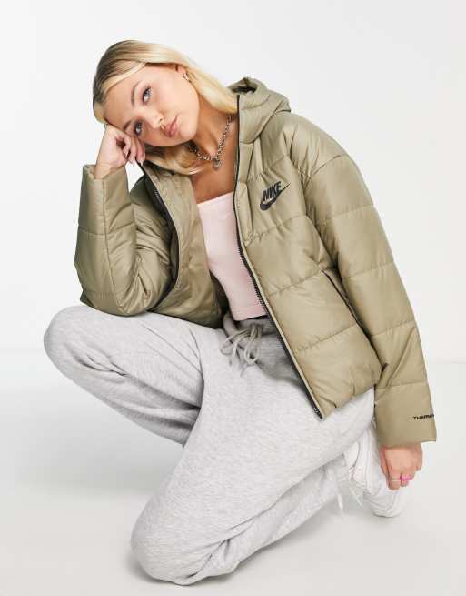 Nike - Klassiek gewatteerd jack met capuchon in mat olijfgroen