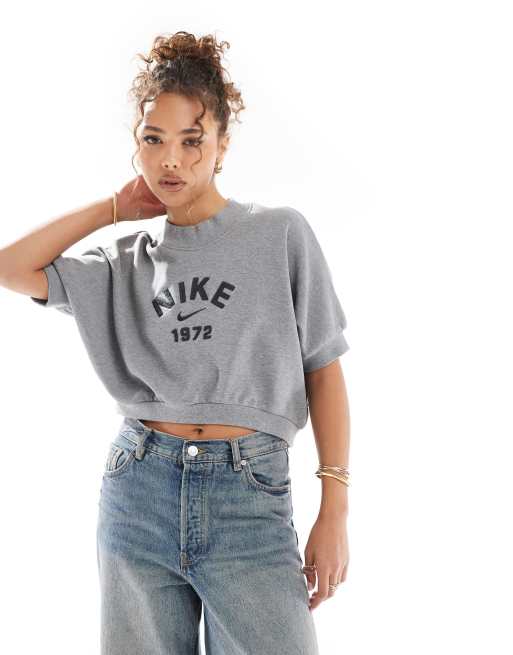 Nike - MSC - Cropped fleece T-shirt in grijs